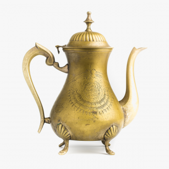 กาน้ำทำจากทองเหลือง วัสดุคงทนแข็งแรง สภาพดี เป็นกาน้ำแบบโบราณ ลวดลายสวยงาม เหมาะแก่การเป็นของตกแต่งบ้าน มีความหรุหรา